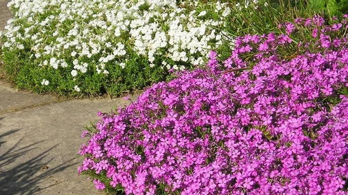 Для солнечных участков лучше высаживать лаванду, сантолину и травянистые пионы. Они нуждаются не менее 6 часов прямого солнца в день. Также прекрасно приживется флокс шиловидный, который создает эффектный цветущий ковер и неприхотливые очитки.