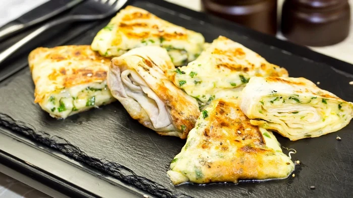 - В сковороде на среднем огне разогрейте растительное масло, каждый лаваш обмакните в яичном кляре, обжарьте с двух сторон до золотистого цвета.