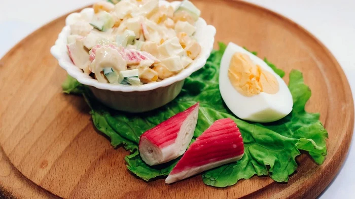Один из самых легких, быстрых и простых в приготовлении салатов — крабовый. Несмотря на простоту продуктов и приготовление, он отлично подойдет на праздничный стол.